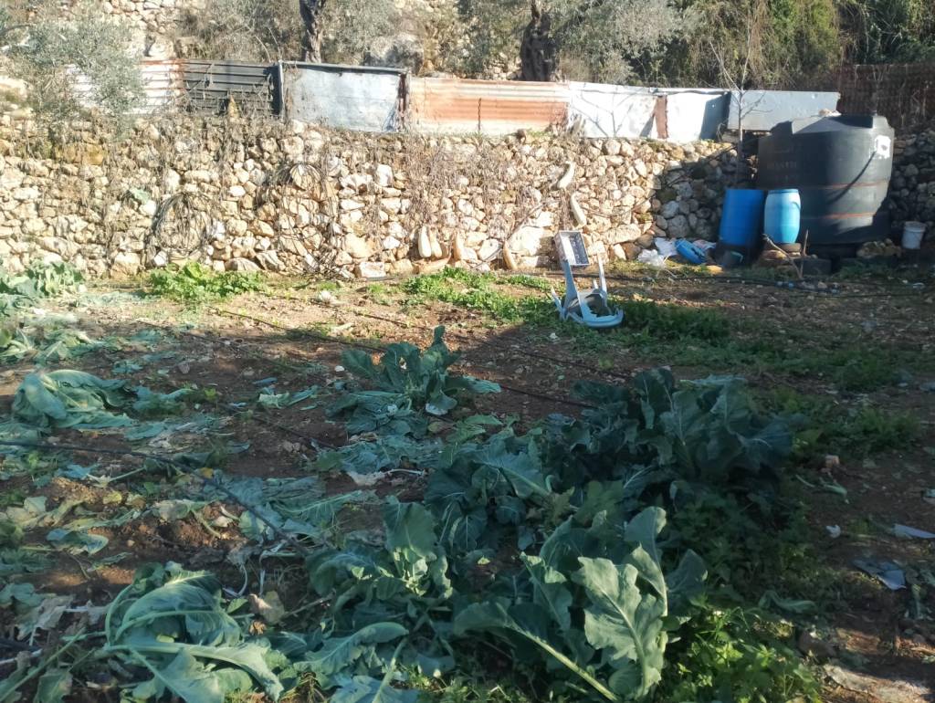 On January 15, 2025, a group of settlers destroyed agricultural land planted with vegetables near Badran Spring. They vandalized the irrigation network and a water tank, and stole the crop.