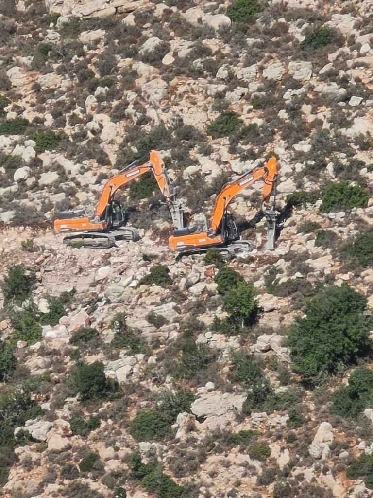 Bulldozing continued, and on October 6, 2024, bulldozers paved a settlement road spanning through 165 dunums. These new roads connect the settlement to the Israeli road network, threatening numerous agricultural lands.